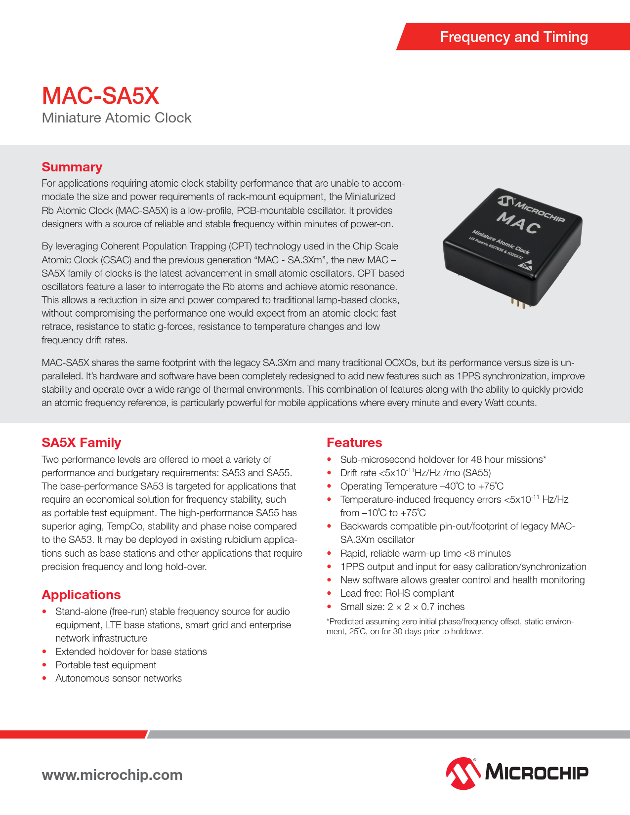 MAC-SA5X微型銣原子鐘可提供穩(wěn)定的時間和頻率基準(zhǔn),并與基準(zhǔn)時鐘(如GNSS衍生信號)保持高度同步。新產(chǎn)品同時具備低月度漂移率和短期穩(wěn)定性,并且在溫度變化時仍能保持穩(wěn)定,從而能夠在GNSS信號中斷期間保持較好的頻率和計時要求更長時間,也可用于無法安裝大型機架時鐘的應(yīng)用場景。...