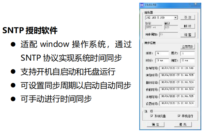 ●用于對HJ2000B設(shè)備中NTP服務(wù)的詳細(xì)監(jiān)控; ●可監(jiān)視HJ2000B服務(wù)器自身的狀態(tài)信息,包括同步狀態(tài)、時(shí)間偏差、層次信息等; ●可監(jiān)視北斗/GPS參考源信息,包括鎖定狀態(tài)、定位信息等; ●可監(jiān)視NTP客戶端訪問情況和時(shí)間偏差; ●支持時(shí)間偏差門限告警、失鎖告警和狀態(tài)切換告警; ●支持SNMP、syslog、Email等告警方式; ●支持服務(wù)器集群服務(wù)質(zhì)量監(jiān)測和優(yōu)選制動(dòng)操作。 |